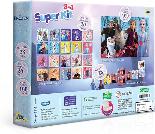 Super Kit - Frozen (quebra cabeça 100 peças, memória + dominó)