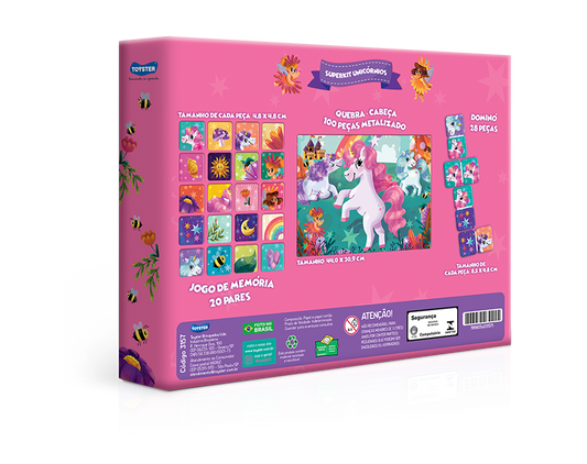 Unicórnios Metalizado - Super Kit (quebra-cabeça, dominó e jogo da memória)