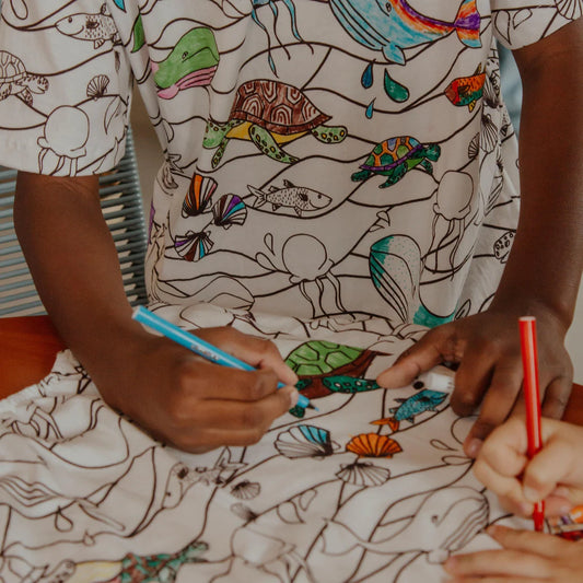 Camiseta para Pintar Estampa Um Mergulho na Ilha - Gola Preta