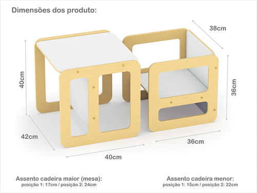Conjunto de Mesa e Cadeira Cubo Montessori