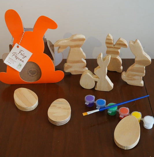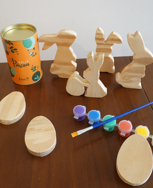 Kit Páscoa: Pintura em Madeira + Maleta Coelho LEVe Brigaderia - com 6 ovinhos