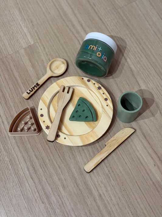 Prato, Talheres e Copo Verde e Massinha Artesanal Atóxica