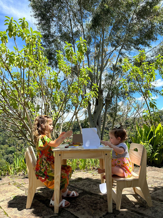 Mesa Infantil com 2 Cadeiras em Madeira Pinus