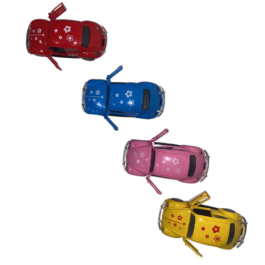 Kit de 4 Mini Carrinhos com Fricção Beatle com Flores