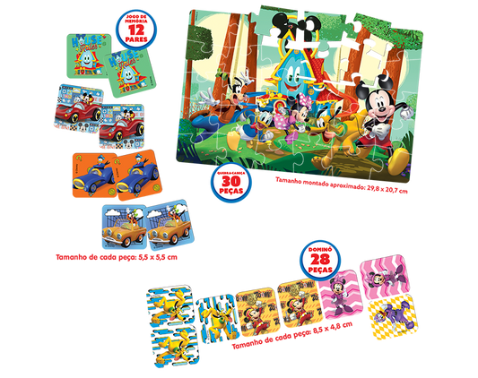 Jogos Mickey - Super kit (quebra-cabeça, jogo da memoria, dominó)