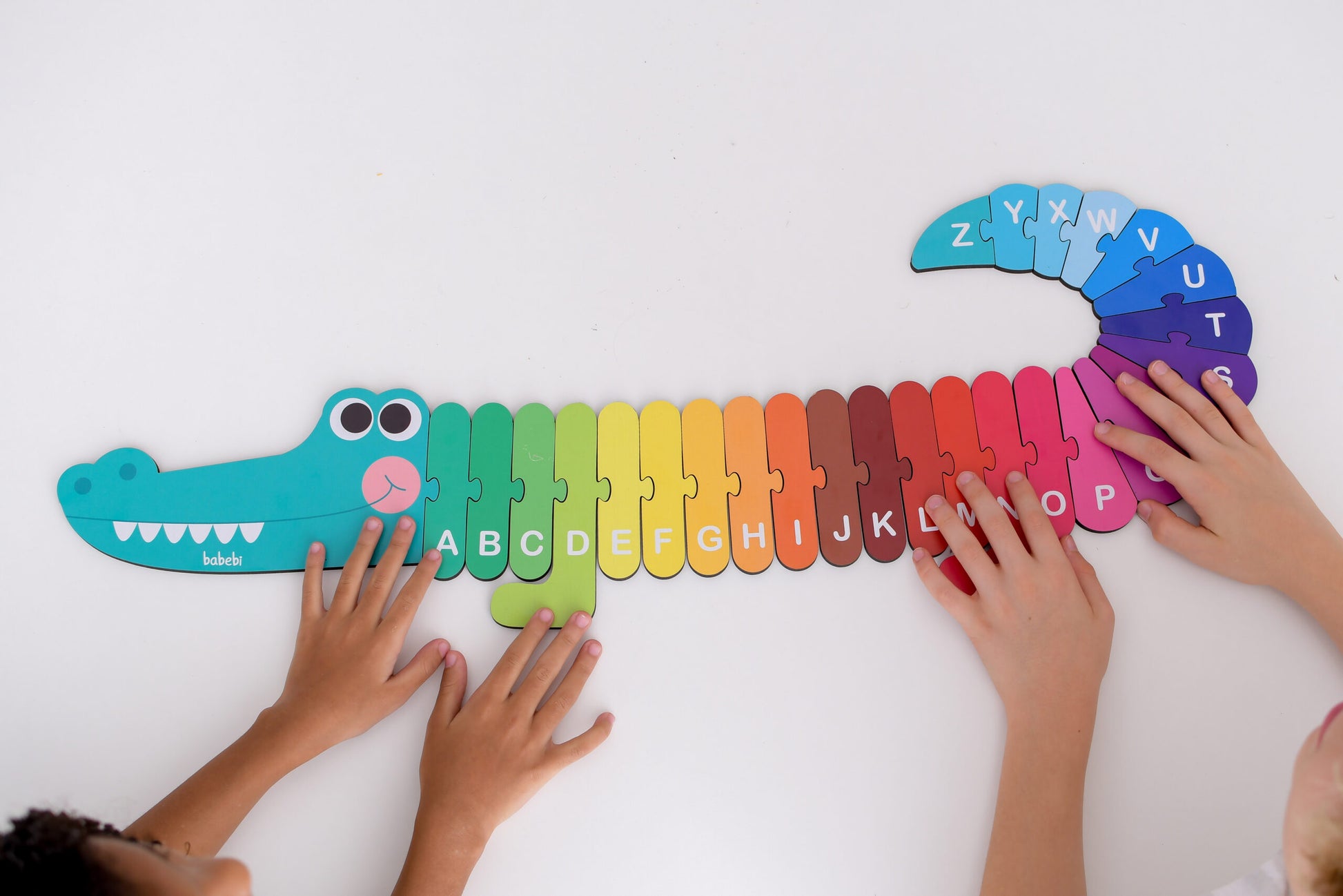 Mergulhe na diversão com nosso incrível Alfabeto Crocodilo. Com cores vibrantes e design amigável, nosso crocodilo transforma o aprendizado em uma brincadeira muito divertida. Prepare-se para explorar o mundo das letras com muita alegria.