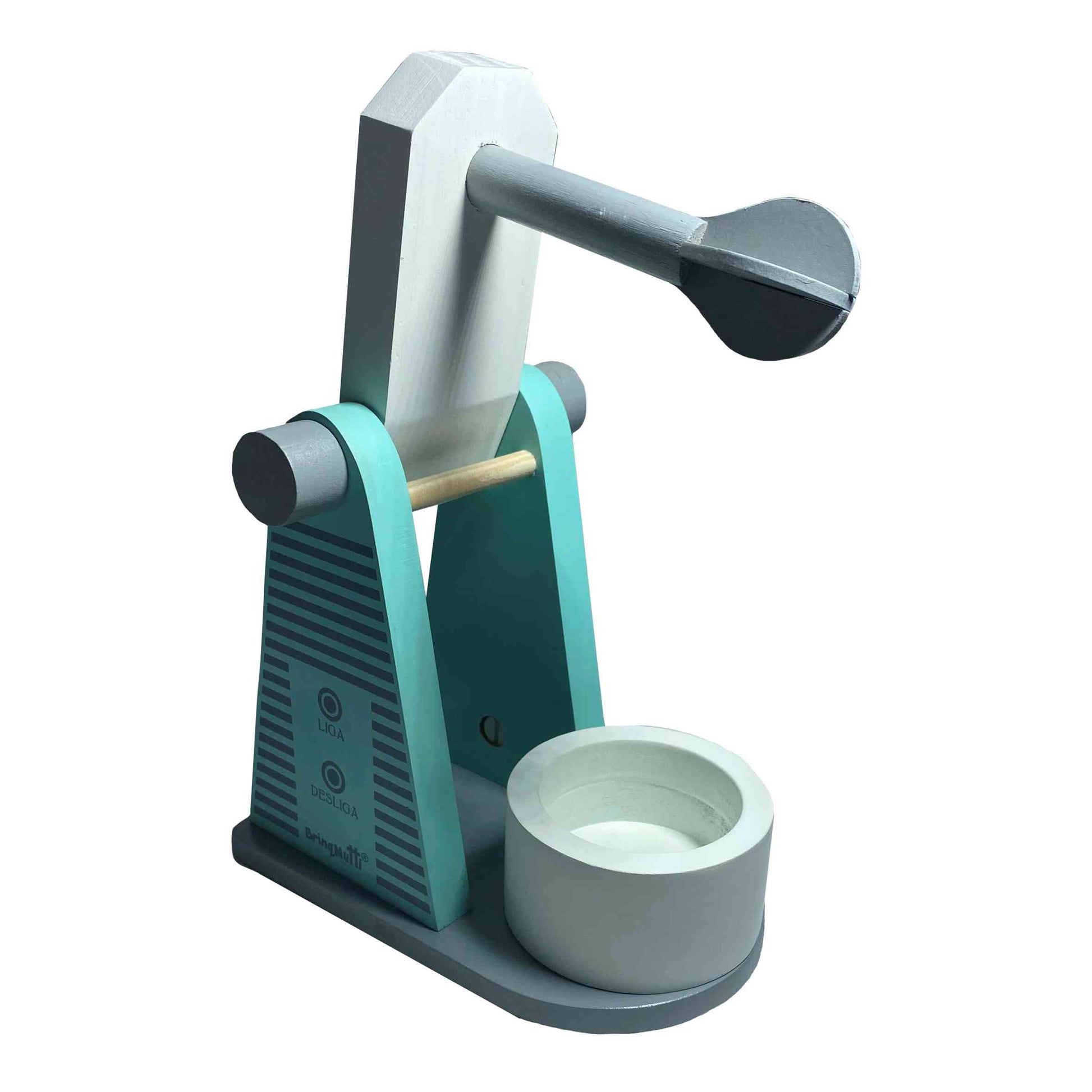 Composição: 1 batedeira de madeira com tigela. Dimensões 17x18x16