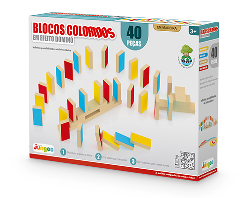 Composição: Jogo com 40 blocos colorido em madeira de reflorestamento (MDF) em 12mm de espessura, de diferentes cores com pintura atóxica. Dimensões da embalagem: 26x06x20 cm