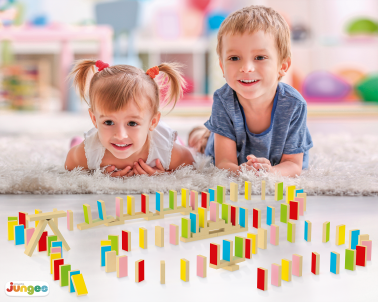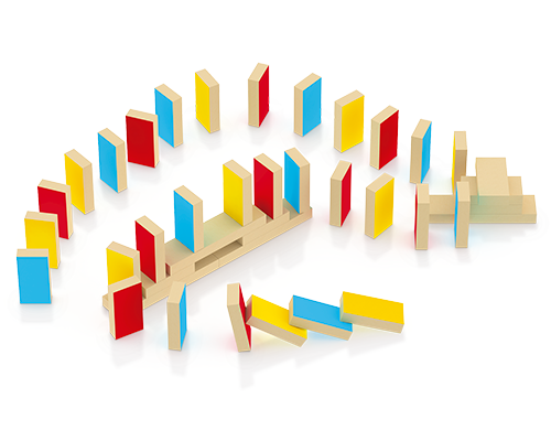Distribua e organize os blocos, crie obstáculos e percursos, derrube todos com o efeito dominó. O objetivo do jogo é enfileirar as peças de modo que, ao derrubar a primeira, todas caiam em um efeito dominó. Monte, derrube e monte com novo formato e obstáculos! Infinitas possibilidades e configurações de brincadeira! Ideal para que a criança desenvolva a atenção, coordenação motora e concentração, bem como para estimular a criatividade, imaginação, organização e percepção de causa/consequência.