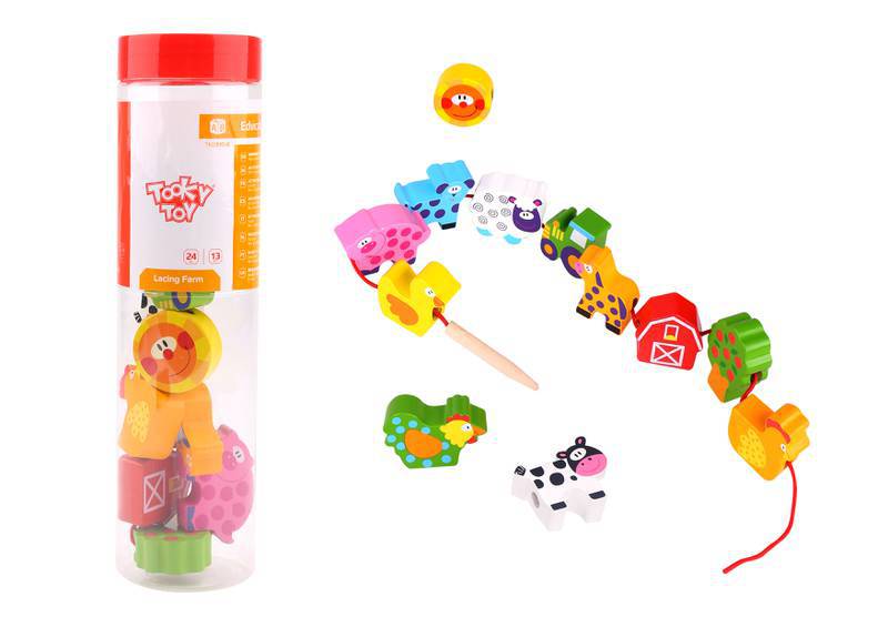 As crianças terão horas de diversão passando o cordão pelo orifício dos 12 blocos.