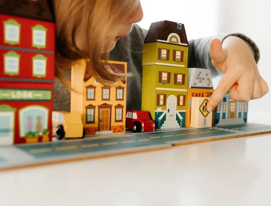 Os Blocos para Montar uma Cidade é perfeito para construir um bairro inteirinho, simulando a realidade. Incentive os pequenos em uma brincadeira de faz de conta, com prédios, delegacia, corpo de bombeiros e farmácia. Desenvolva a coordenação motora, concentração, criatividade, imaginação, raciocínio lógico e solução de problemas.