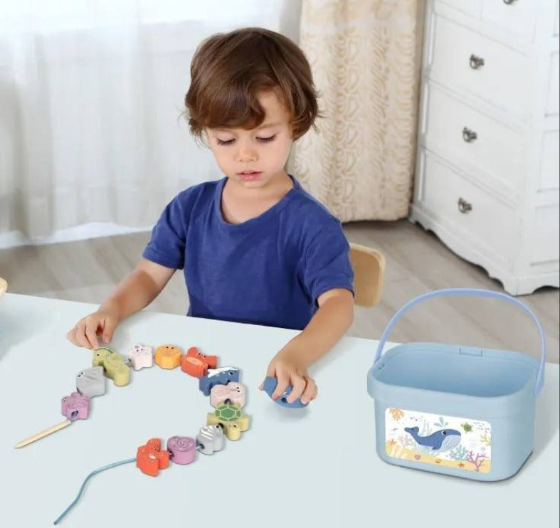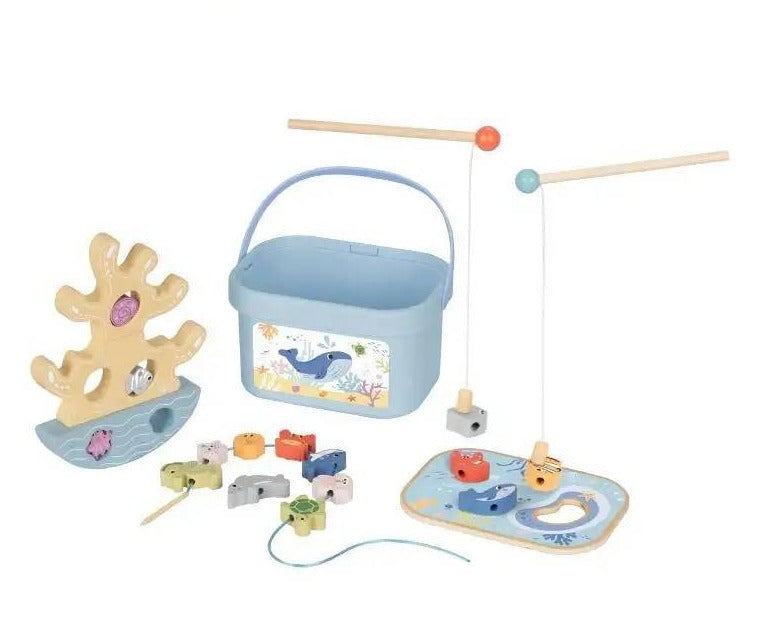 A Caixa Pescaria - 3 em 1 é perfeita para unir diversão e aprendizado! Com peças de madeira em formato de animais marinhos, este brinquedo combina empilhamento, equilíbrio e lançamento, ajudando a desenvolver o desenvolvimento motor, a concentração e a criatividade das crianças. Ideal para momentos lúdicos e educativos!