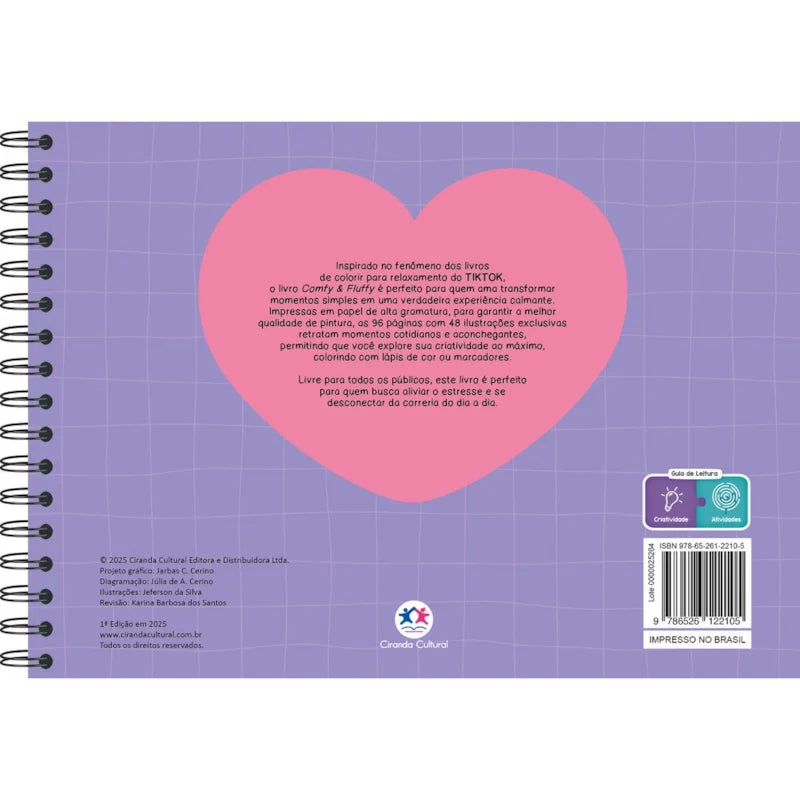 O livro COMFY & FLUFFY é uma excelente escolha para quem busca transformar pequenos momentos em experiências de relaxamento e conforto. Inspirado no sucesso dos livros de colorir no TikTok, ele combina criatividade com bem-estar.Com 96 páginas, 48 desenhos exclusivos para colorir e impressos em papel de alta gramatura, o livro oferece uma experiência de pintura de alta qualidade, ideal tanto para lápis de cor quanto para marcadores. Suas ilustrações capturam a essência do cotidianos e momentos aconchegantes, incentivando a exploração artística de forma descomplicada.Livre para todas as idades, COMFY & FLUFFY é mais que um livro de colorir: é uma ferramenta perfeita para aliviar o estresse, desacelerar e se desconectar da rotina atribulada. Uma verdadeira pausa criativa para o corpo e a mente!