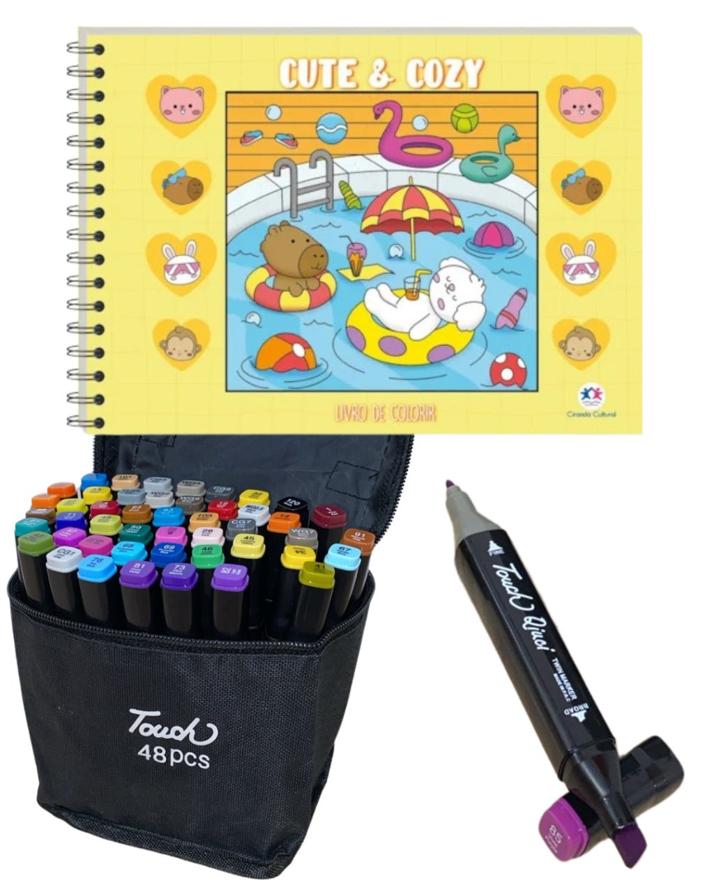 O livro de colorir + canetinhas de 48 cores é uma excelente escolha para quem busca transformar pequenos momentos em experiências de relaxamento e conforto.