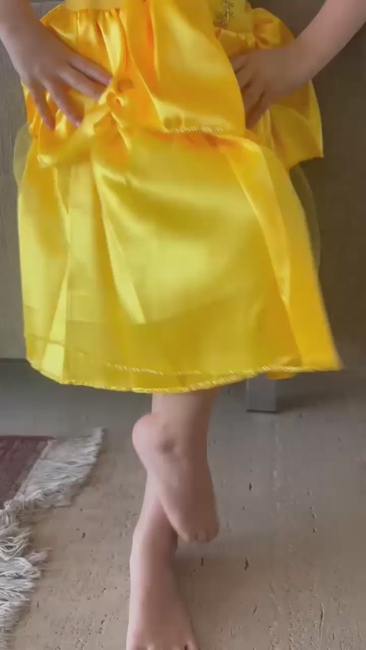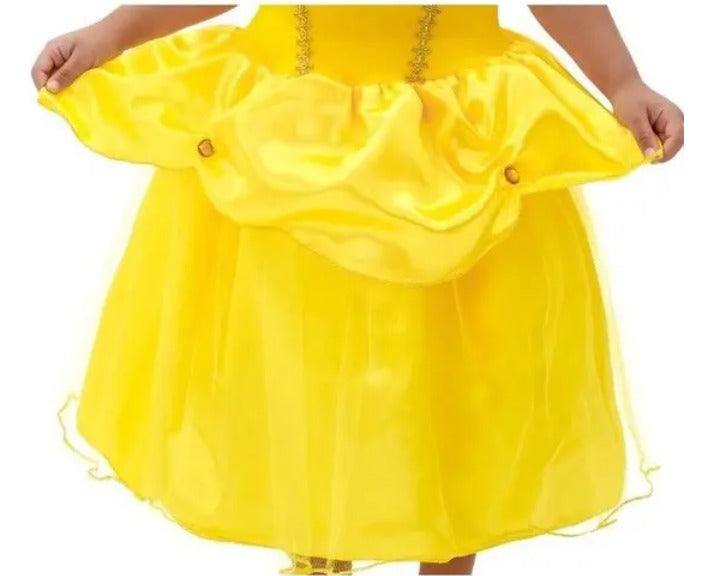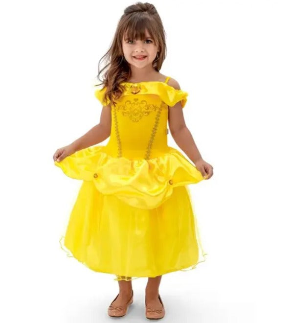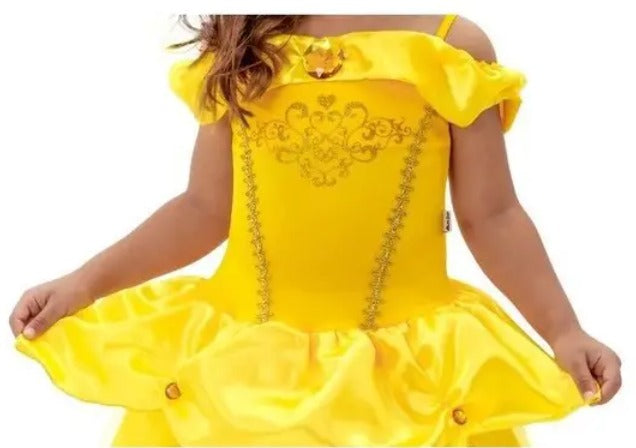 Com a Fantasia Princesa Cristal a sua filha vai arrasar nas festinhas usando sua imaginação. Fantasia composta por um lindo Vestido Amarelo. Sua composição é 100% poliester. Para maior conforto, o corpo é em malha helanca, com alcinhas e um tule transpassado caído nos ombros, possui detalhes em galão metalizado e na frente um lindo desenho em glitter. A saia longa é enfeitada com um babado bem cheinho, e detalhes em pedras brilhantes douradas. Além de possuir forro em tnt que o deixa bem cheinho, lindo e delicado como o de uma verdadeira princesa!