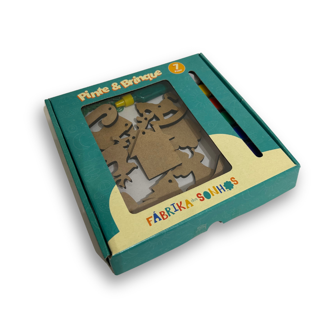 Conjunto de peças no tema natalino. 13 peças em madeira de reflorestamento, 13 cores de tinta atóxica e pincel para colorir. Além de pintar os personagens e objetos!