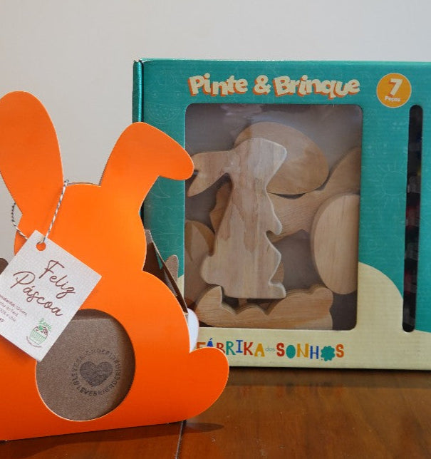 - O Kit Pintura em Madeira contém 7 peças, 6 cores de tinta atóxica e pincel para colorir.