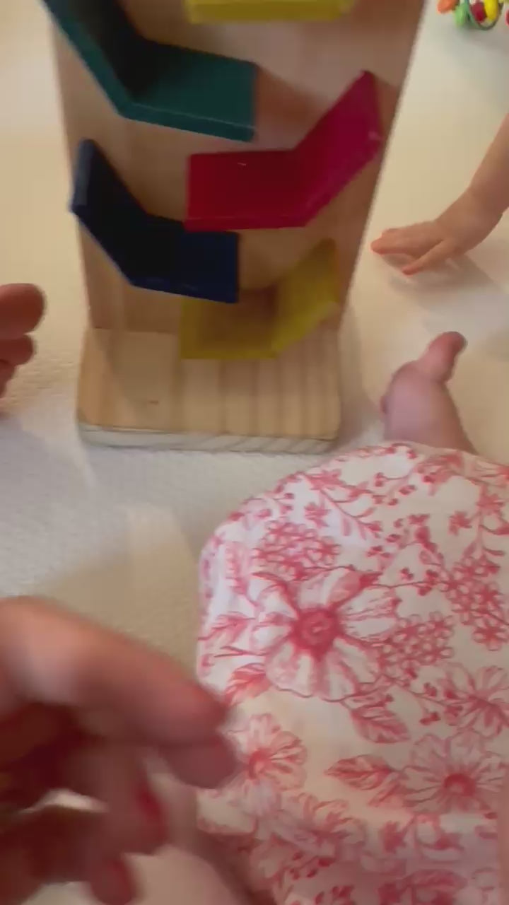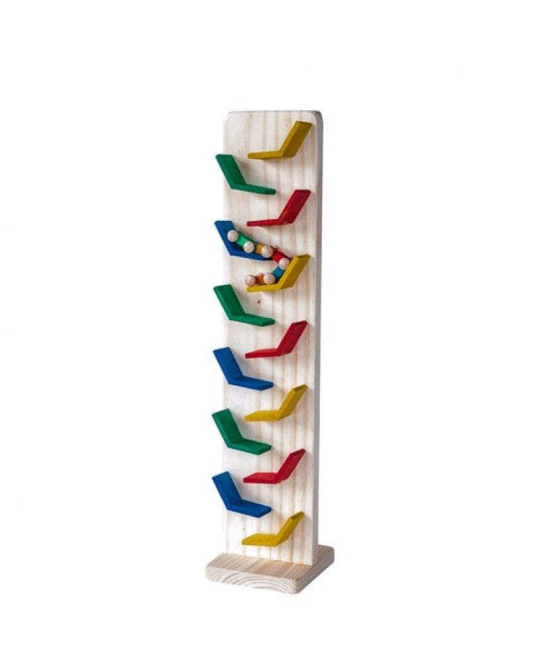 Torre composta de pequenas rampas dispostas de forma alternada, por onde desce um carrinho tipo “trenzinho da montanha russa”, em movimentos de zig-zag. Executado em pinus maciço, carrinho colorido. Zig Zag é um brinquedo de movimento, divertido e inteligente, que instiga a curiosidade das crianças.